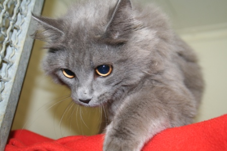 ..auch ein neuzugang...ca. 10-12 monate alt.diva hoch drei und schreit den ganzen laden zusammen...aber eher so nach dem motto, wo ist das personal??? ihr geht es prima..nun mal die frage,welche rasse ist das denn? bin da ja nit so bewandert?, mit rassen,muss ja was langhaariges blau-graues sein...